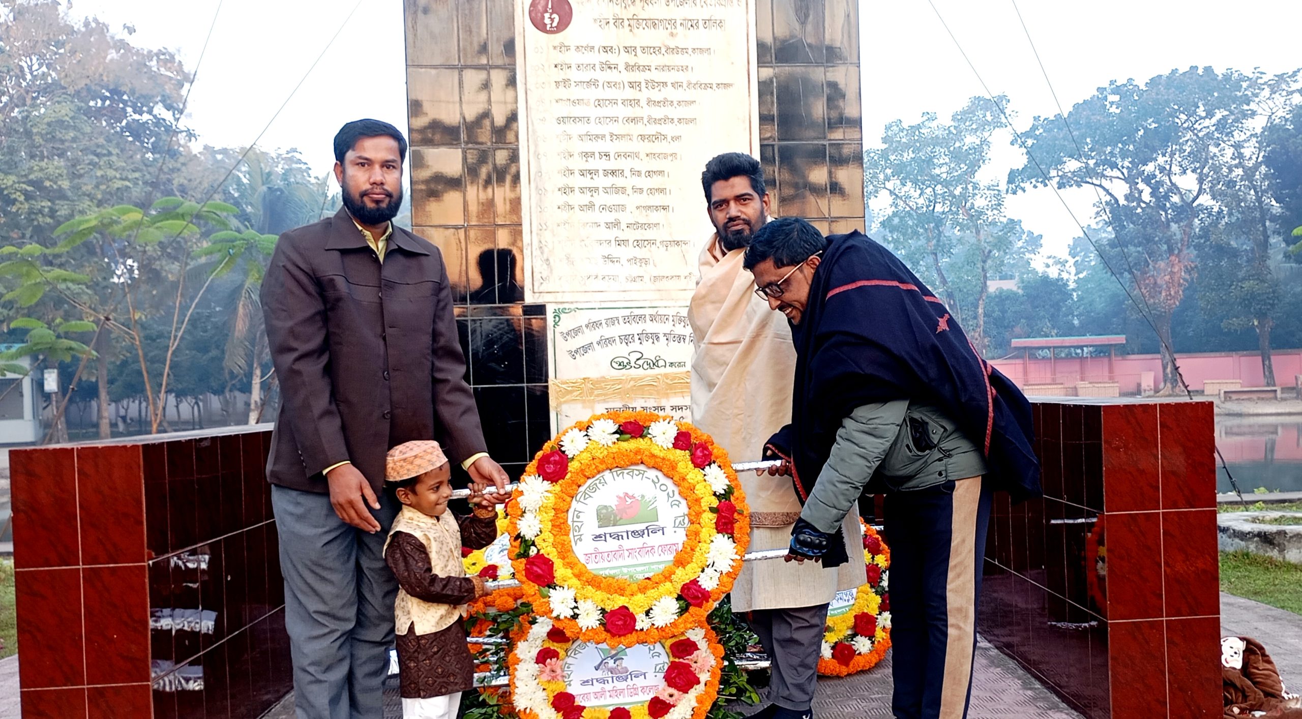মঙ্গলবার (১৬ ডিসেম্বর) সকালে উপজেলা পরিষদ চত্বরে অবস্থিত মুক্তিযোদ্ধা স্মৃতিস্তম্ভে পুষ্পস্তবক অর্পণের মাধ্যমে ১৯৭১ সালের মহান মুক্তিযুদ্ধে শহীদ বীর সন্তানদের প্রতি গভীর শ্রদ্ধা জানানো হয়।