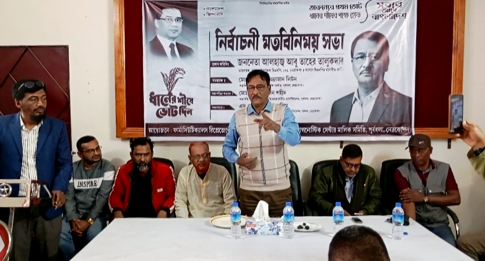প্রধান অতিথির বক্তব্যে আলহাজ্ব আবু তাহের তালুকদার বলেন, তিনি নির্বাচিত হলে সর্বপ্রথম পৌরসভার পুনর্গঠন ও স্বাস্থ্যসেবা খাতের উন্নয়নে অগ্রাধিকার দেবেন। বিশেষ করে উপজেলা স্বাস্থ্য কমপ্লেক্সের সার্বিক উন্নয়ন ও আধুনিকায়নের মাধ্যমে জনগণের জন্য মানসম্মত ও সহজলভ্য চিকিৎসাসেবা নিশ্চিত করতে কার্যকর উদ্যোগ গ্রহণ করা হবে। এ ছাড়াও তিনি কৃষি খাতের উন্নয়ন, কৃষকদের সহায়তা এবং সাধারণ মানুষের চিকিৎসাসেবা নিশ্চিতে কৃষি কার্ড ও স্বাস্থ্য কার্ড কার্যক্রম বাস্তবায়নের বিষয়ে গুরুত্বারোপ করেন।