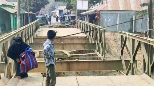 ঝুঁকি নিয়ে ভাঙা বেইলি ব্রিজ পার হচ্ছে সাধারণ মানুষ